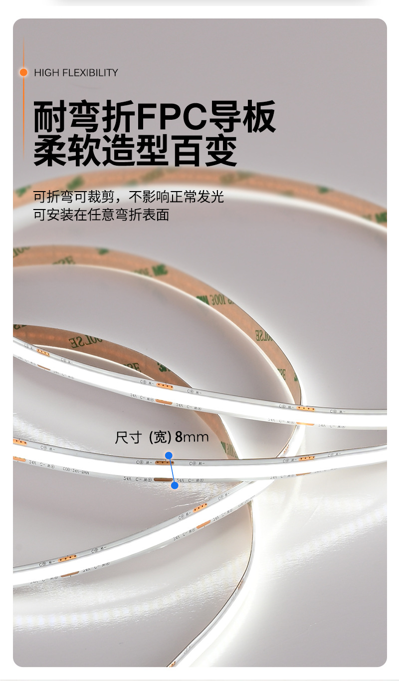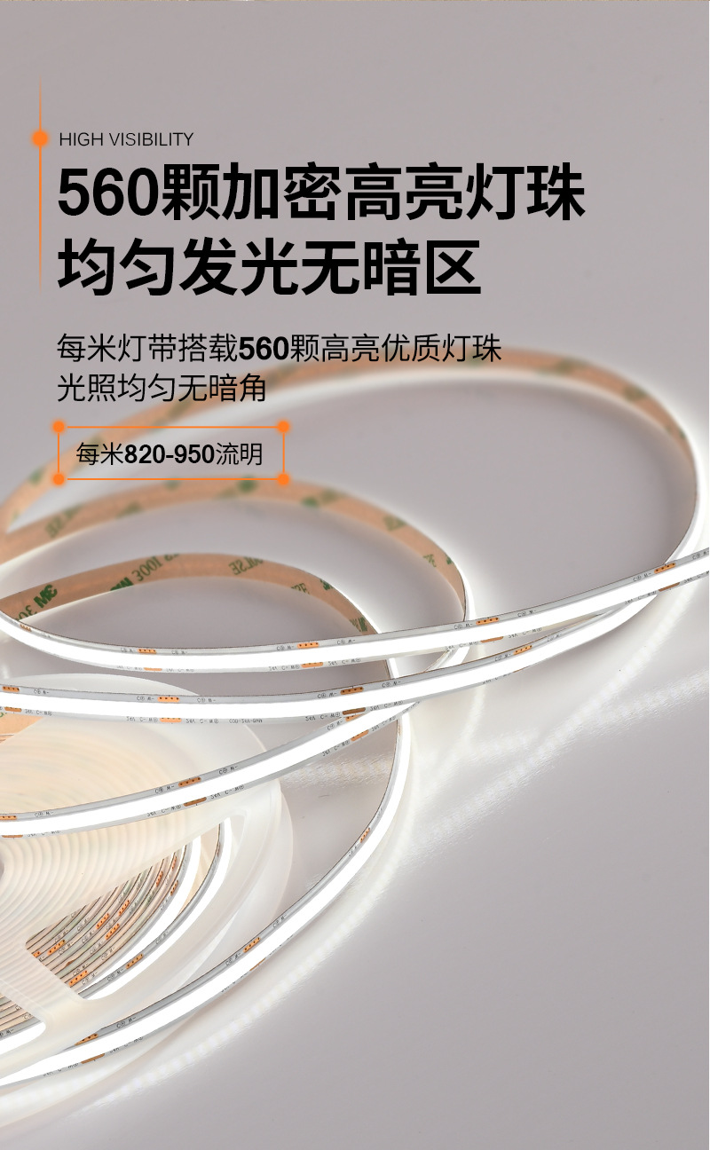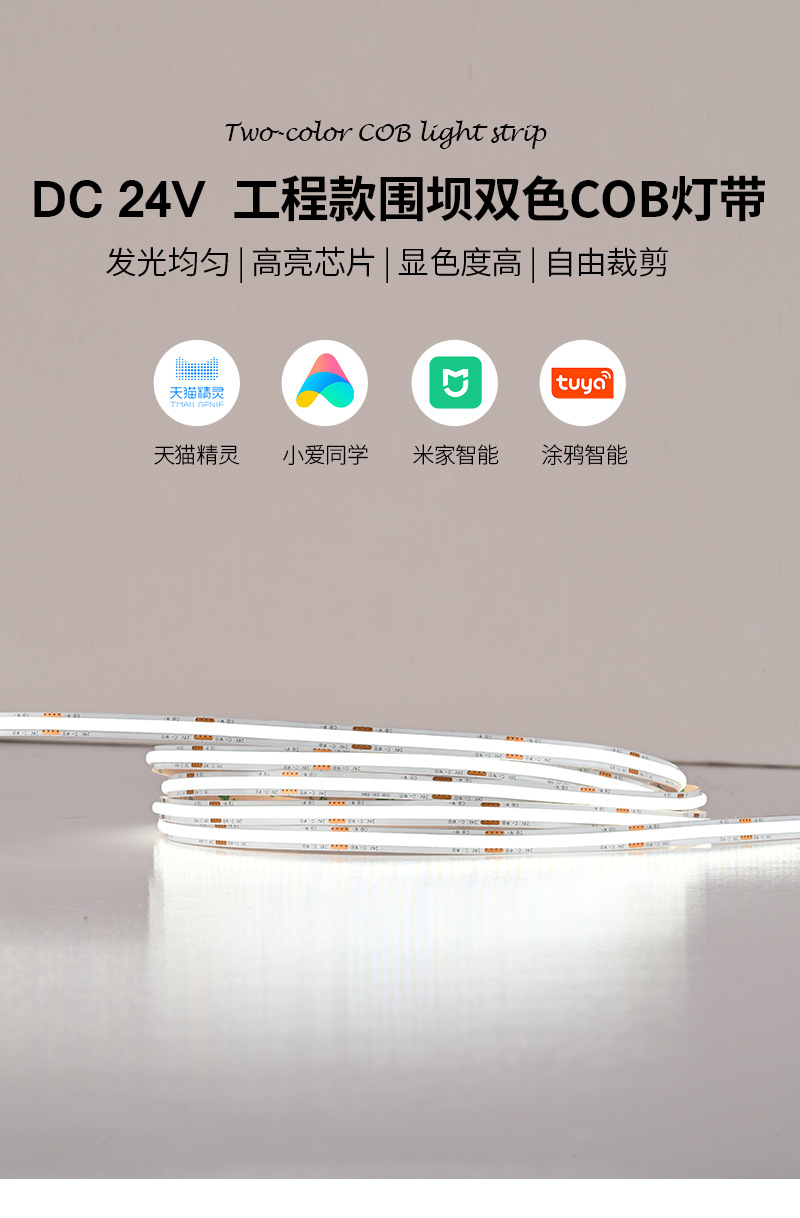 双色智能cob灯带自粘家装室内24V线条灯客厅氛围灯全光谱led灯带