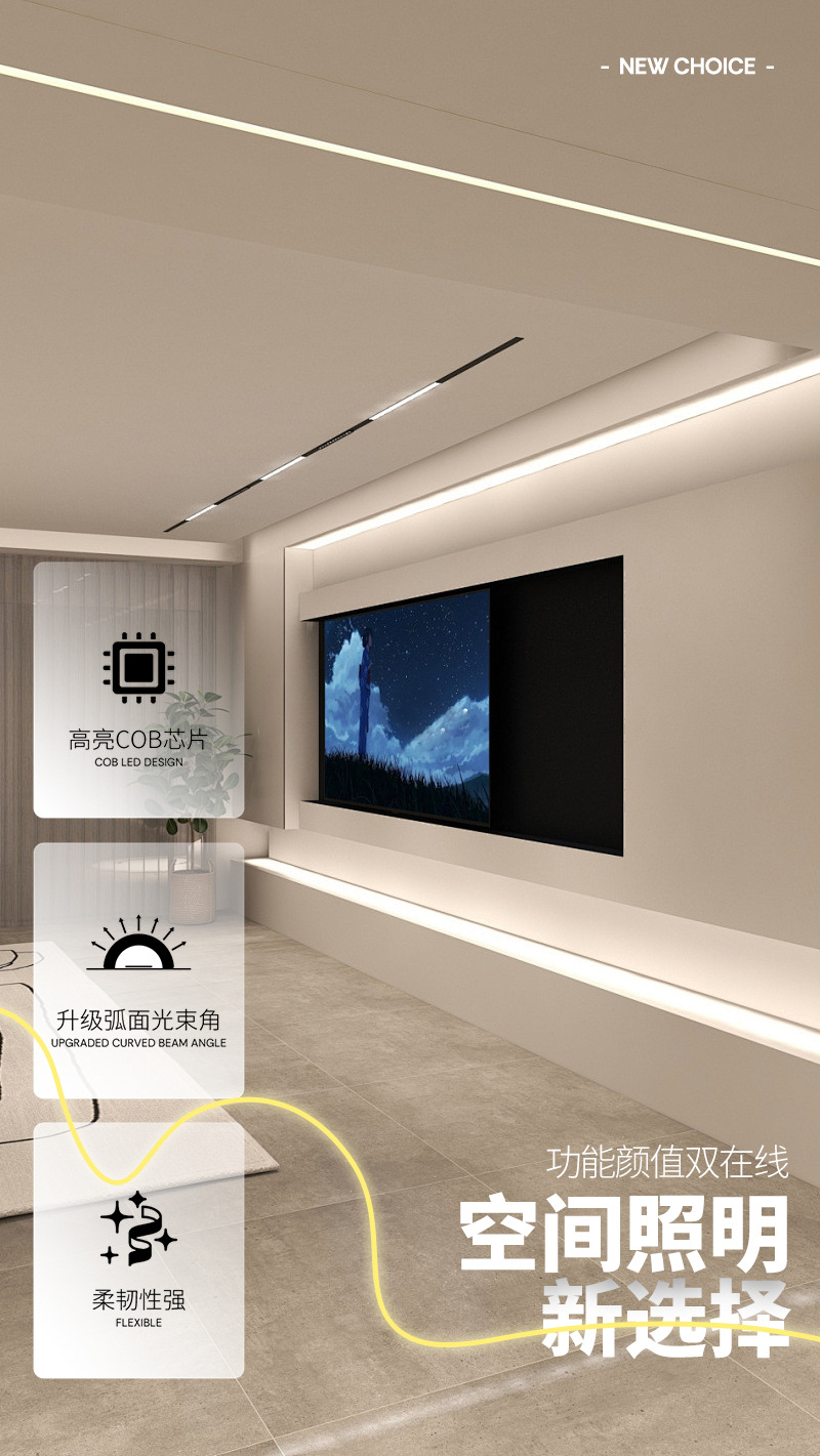 LED低压柔性灯带线条灯防水经济商用COB灯带不显灯珠无光斑线槽灯