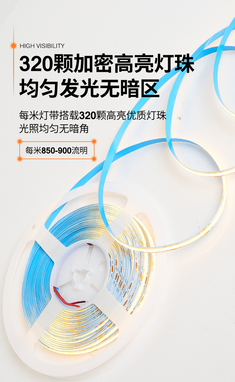 • led无频闪高压灯带户外防水高压cob灯带柔性家装灯条led透明灯带