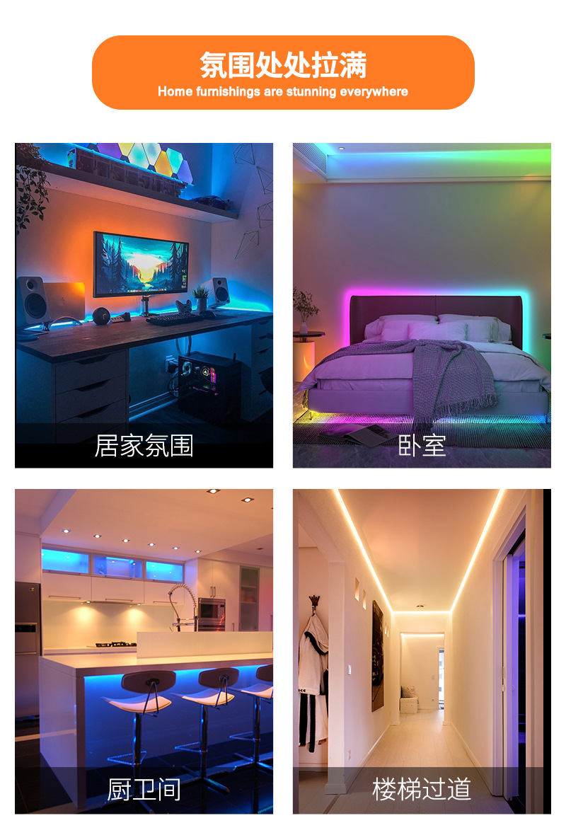 批发RGB灯带七彩变色智能调控装饰氛围自贴高亮防水幻彩COB软灯条