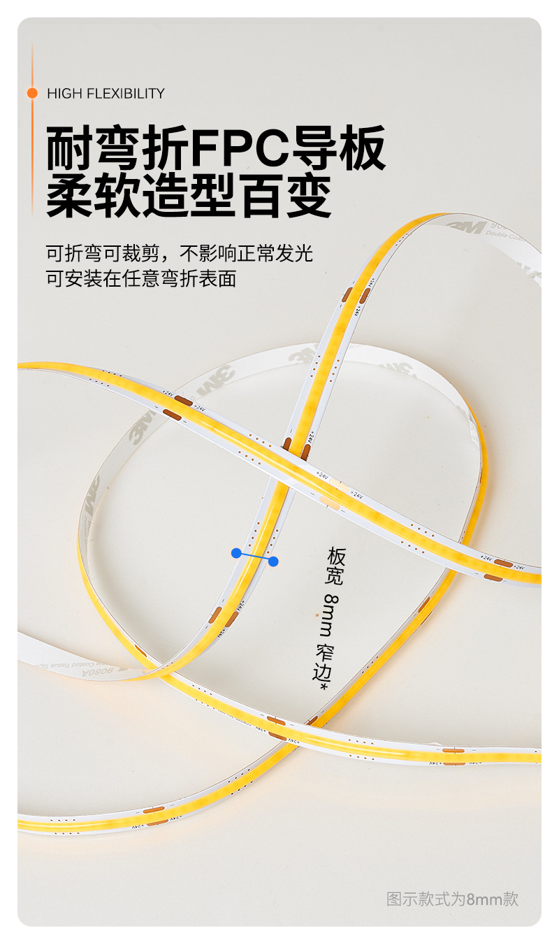 高端商用COB灯带亮度均匀无暗区自粘超薄LED软灯条自粘led线形灯