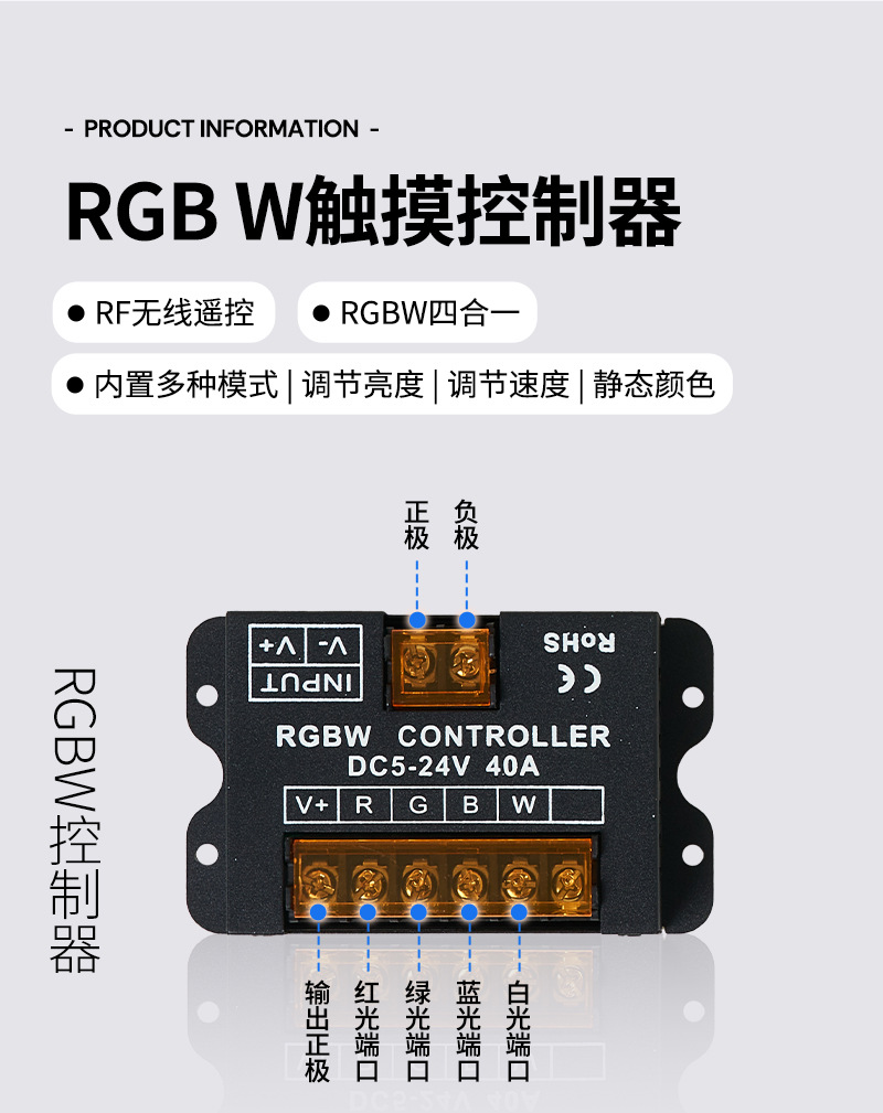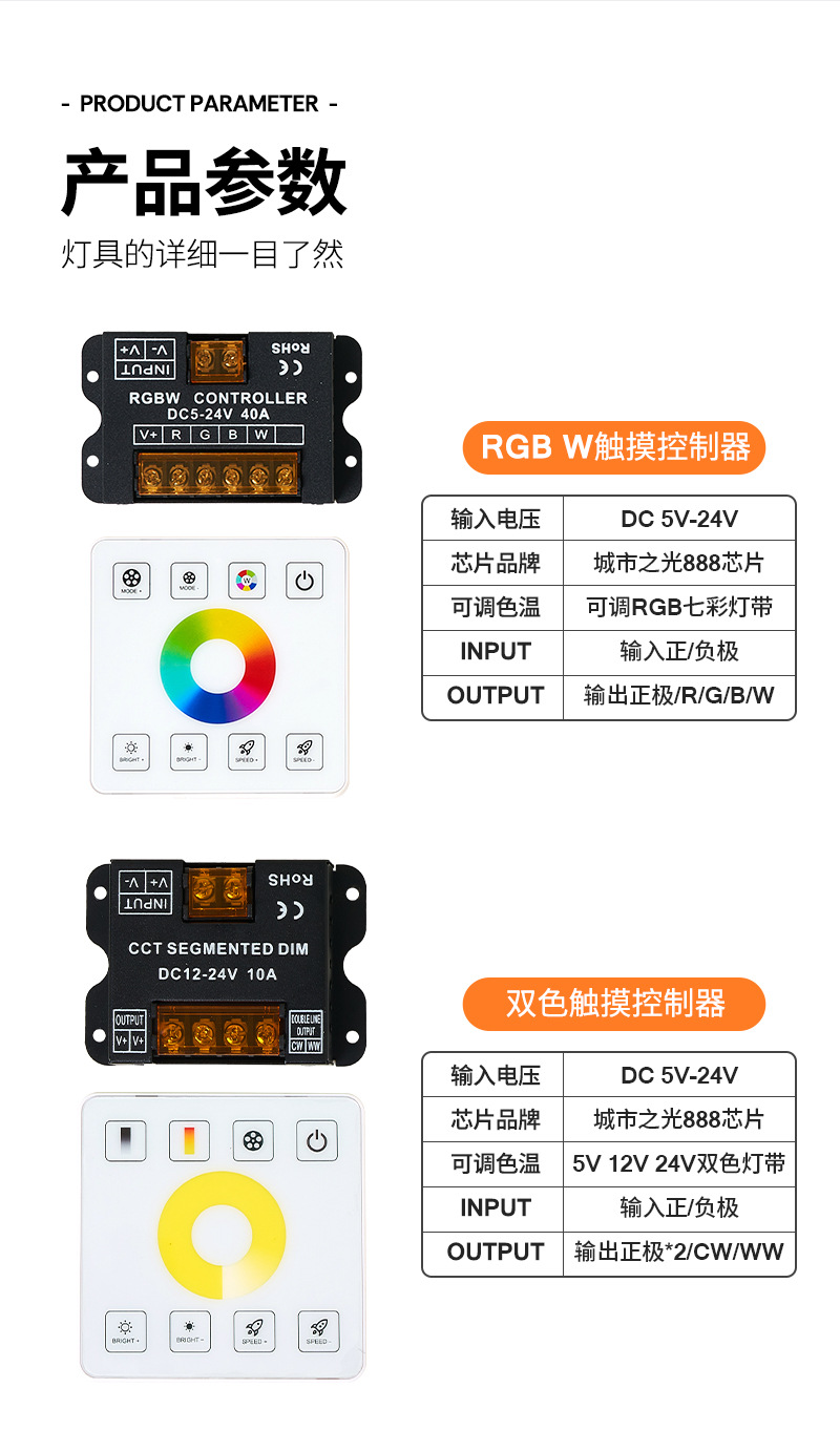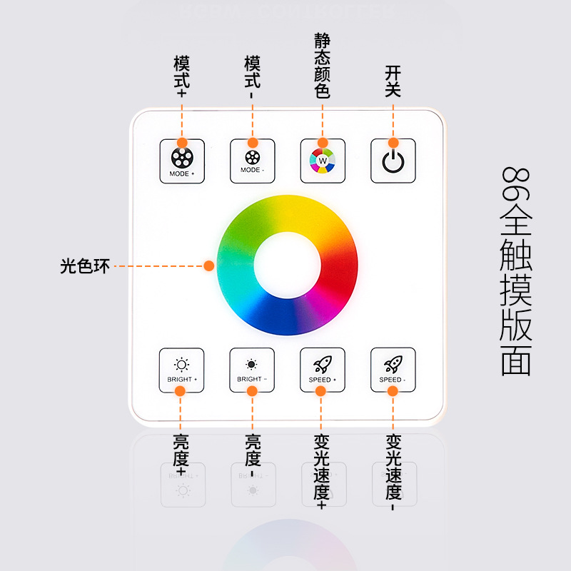 • 无线触摸遥控RGB七彩灯带声控全触摸rgb控制器玻璃触摸面板