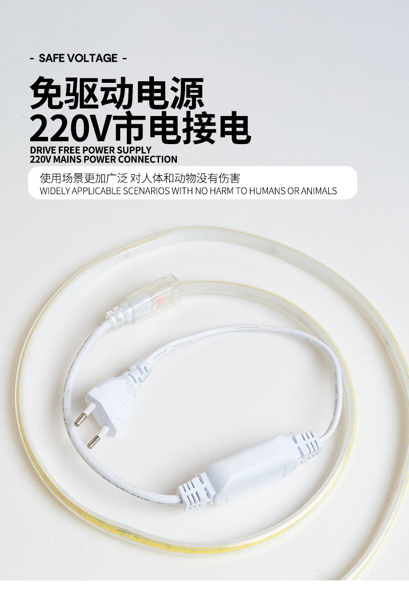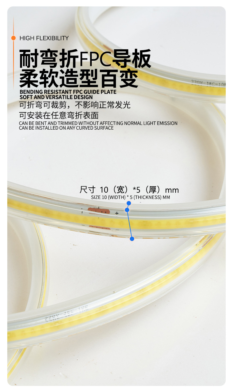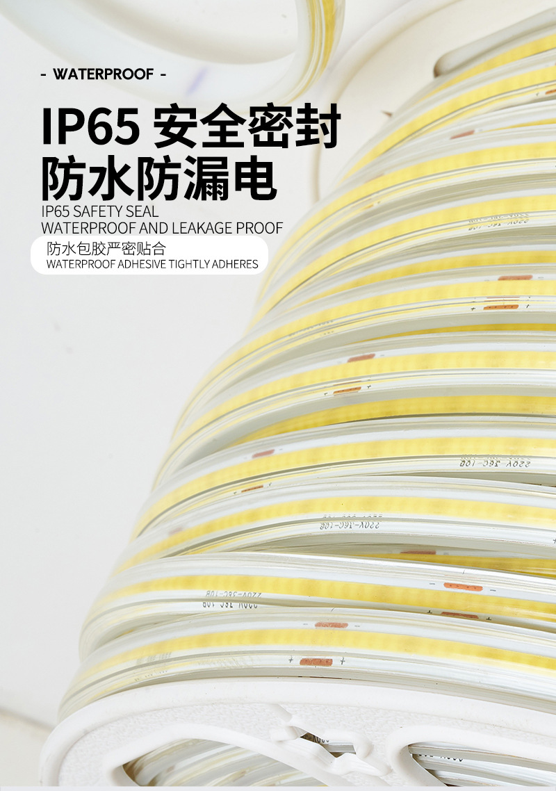 • led无频闪高压灯带户外防水高压cob灯带柔性家装灯条led透明灯带